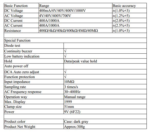 دیگر مشخصات دستگاه کلمپ متر ویکتور vc 6056a را در تصویر زیر مشاهده کنید.
